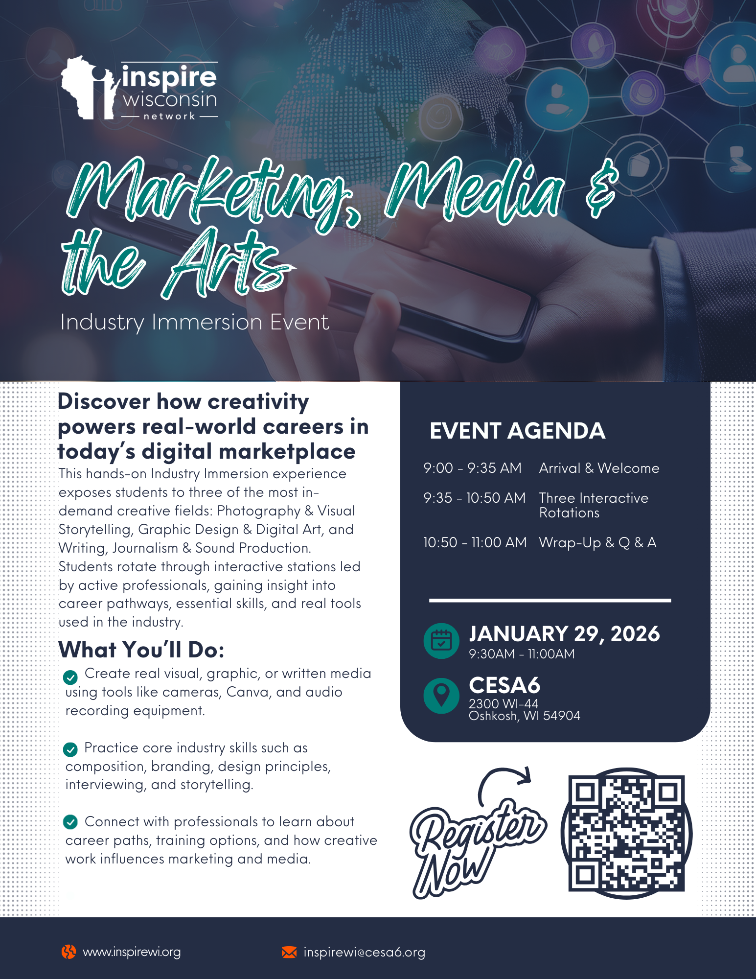 *Connect with professionals to learn about career paths, training options, and how creative work influences marketing and media.