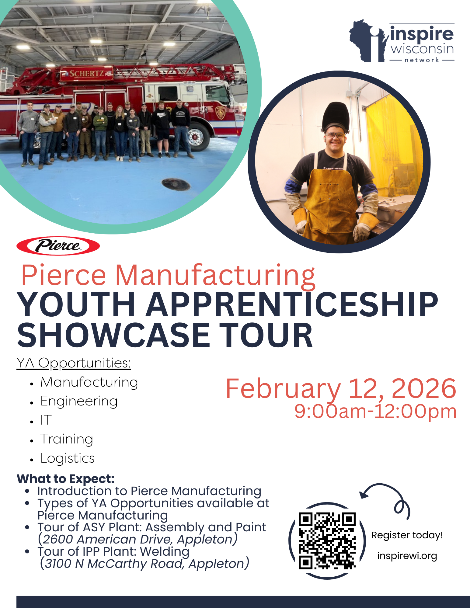 Students are invited to explore Youth Apprenticeship opportunities at Pierce Manufacturing, a leader in custom fire and emergency vehicles.