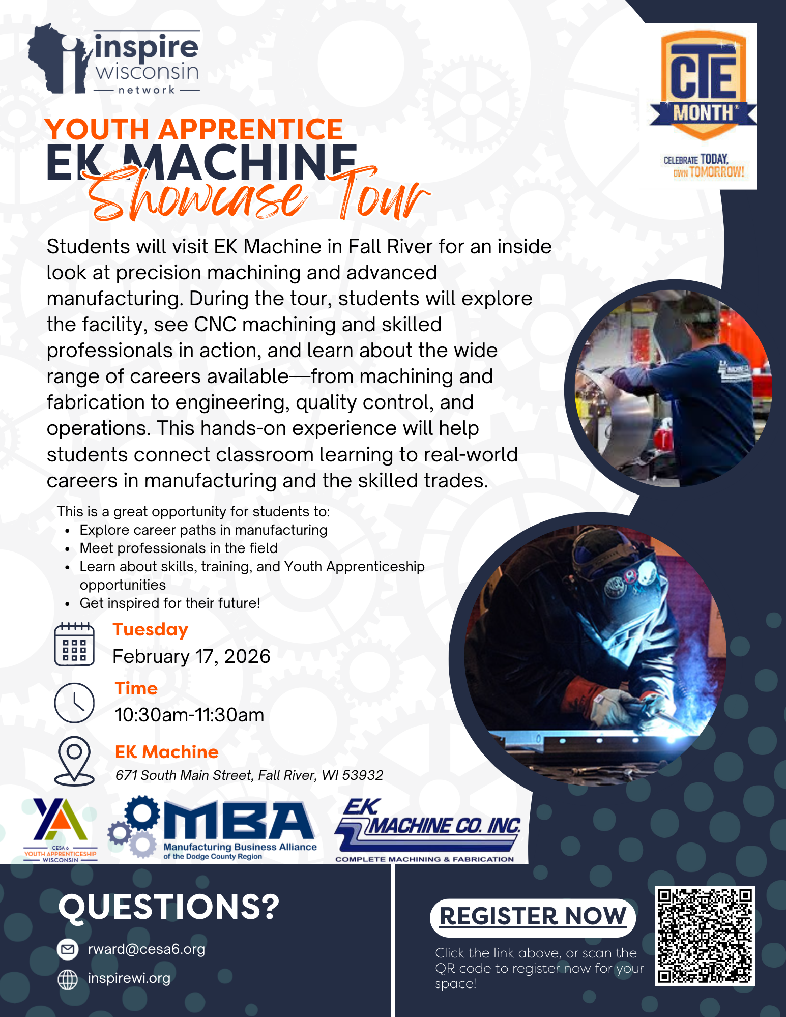 Students will visit EK Machine in Fall River for an inside look at precision machining and advanced manufacturing. During the tour, students will explore the facility, see CNC machining and skilled professionals in action, and learn about the wide range of careers available—from machining and fabrication to engineering, quality control, and operations. This hands-on experience will help students connect classroom learning to real-world careers in manufacturing and the skilled trades.