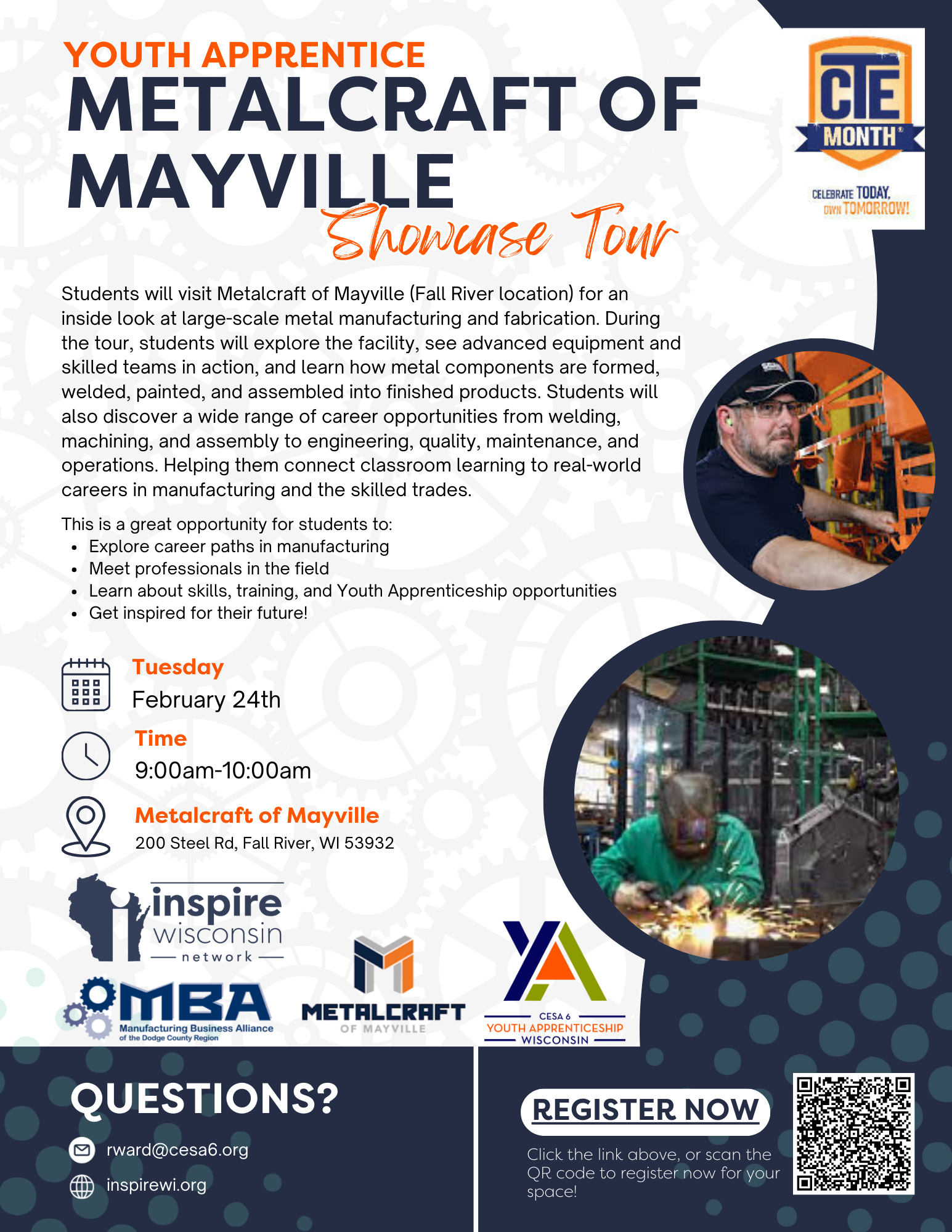 Students will visit Metalcraft of Mayville (Fall River location) for an inside look at large-scale metal manufacturing and fabrication. During the tour, students will explore the facility, see advanced equipment and skilled teams in action, and learn how metal components are formed, welded, painted, and assembled into finished products. Students will also discover a wide range of career opportunities from welding, machining, and assembly to engineering, quality, maintenance, and operations. Helping them connect classroom learning to real-world careers in manufacturing and the skilled trades.